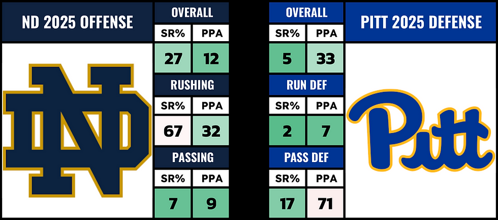 Notre Dame's elite... but this is truly one of the strongest run defenses in the country. Notre Dame is still gonna be missing their starting LG. I'm not sure if we can count on the run game being there for Notre Dame in this game.