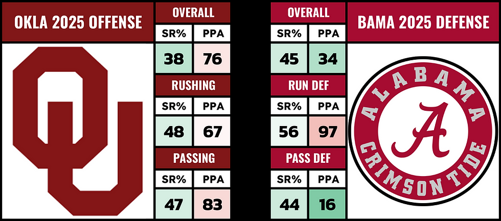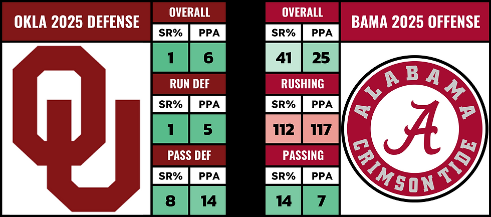 Look this Alabama offense is a powerhouse... but we can't sleep on Oklahoma's defense. Alabama's had problems running the football all year and Oklahoma has the best defensive line in the country.