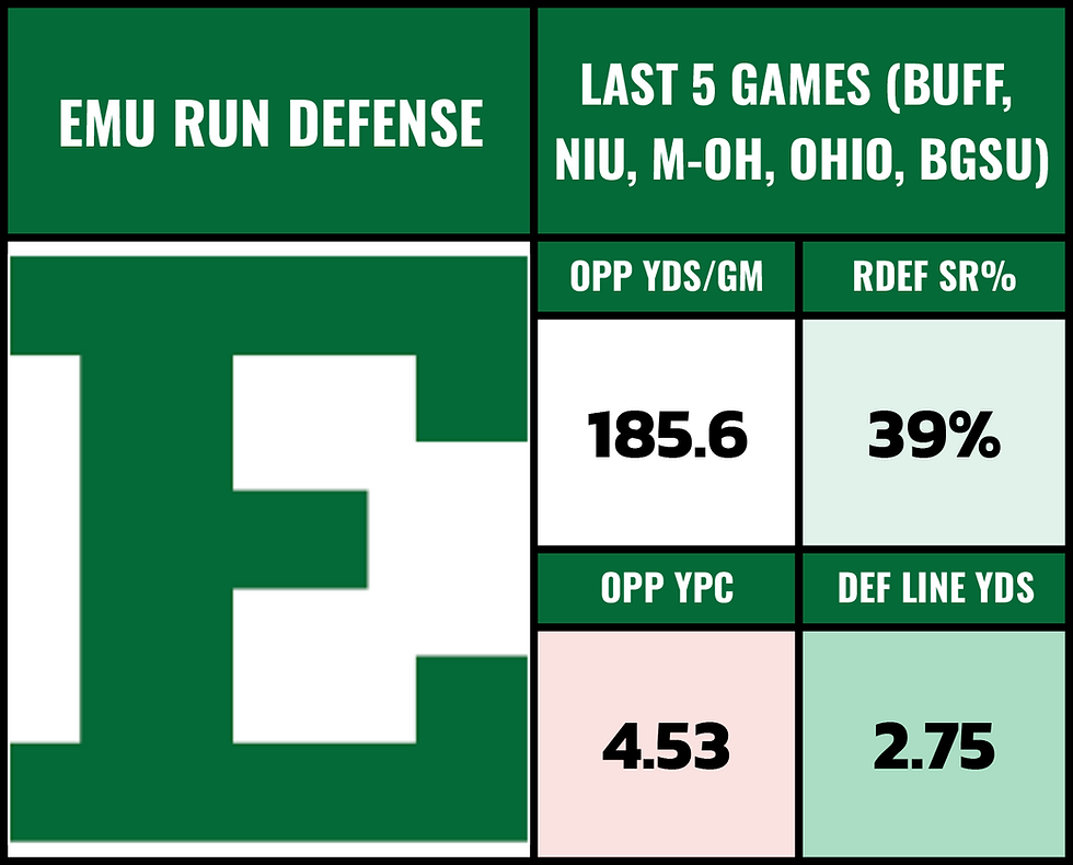 On the other side of the ball, Eastern Michigan's defense is pretty bad... but they still have the advantage because this Ball State offense just really isn't much of a threat.