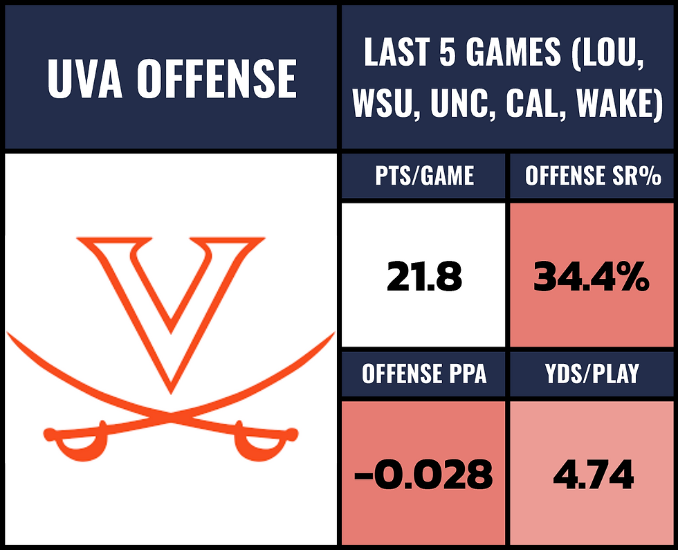 We thought the Wake Forest defense fell off... after the Florida State game, it was like "ok Wake's defense was decent for a while but that's over now". They bounced back by completely shutting down Virginia the following week. Now... Chandler Morris left the game early in the 2nd quarter and Virginia's offense has been trending downward for a while... regardless, they're gonna make stops against North Carolina.
