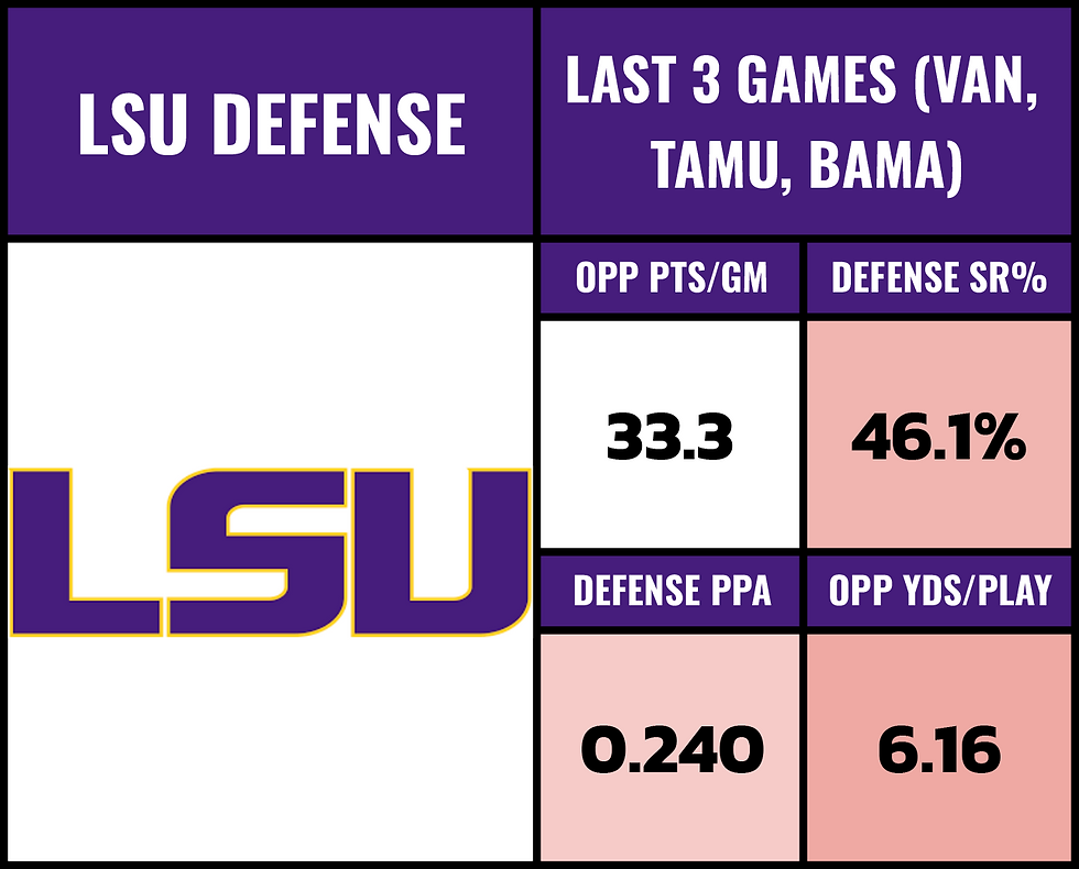 LSU's defense hasn't looked quite the same. They played 3 elite offenses in a row but Arkansas is an elite offense.