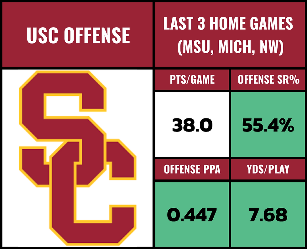 Look at USC's numbers in their 3 home Big Ten games. If it was just Michigan State, ok... but Michigan and Northwestern have strong defenses. Maybe not quite as strong as Iowa's... but still, USC's offense is a wagon at home.