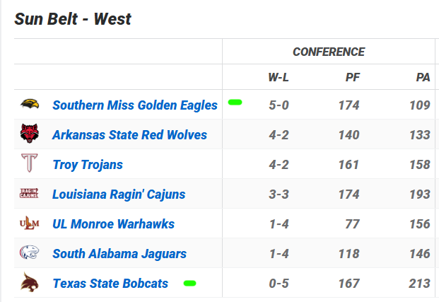 Texas State is 0-5 in conference... they could easily be 4-1. This was one of the favorites to win the division before the year started. That's why the line's only 3.
