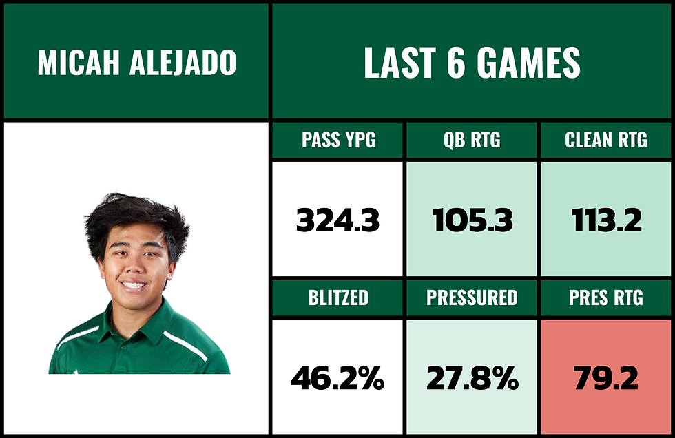 I know Alejado didn't look great in the UNLV game... but if you look at his body of work in the 2nd half of the season since he got healthy, he's been pretty electric. WR Jackson Harris has 713 yards and 10 TDs in these last 6 games.