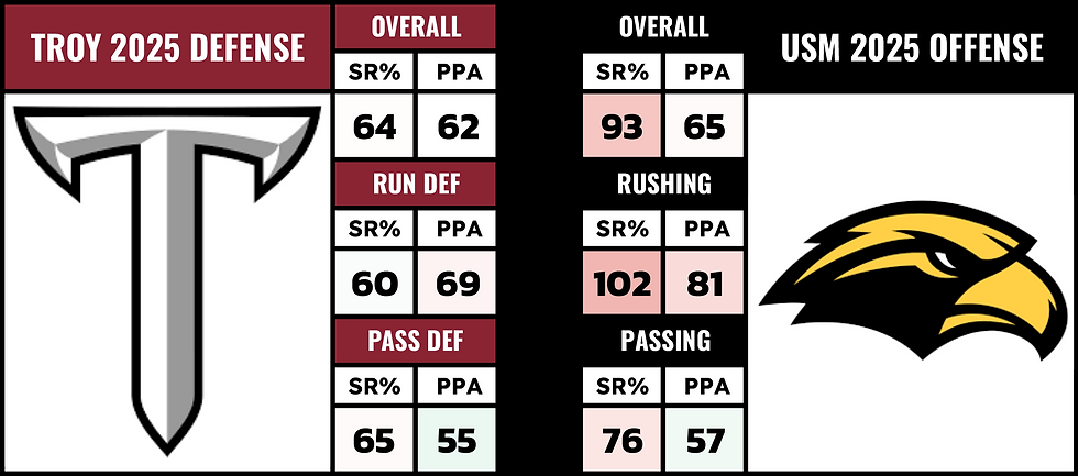 On the other side of the ball, this is where Troy can compete in this game. Braylon Braxton is back, and we did see some explosive plays against South Alabama, but the efficiency wasn't really there.