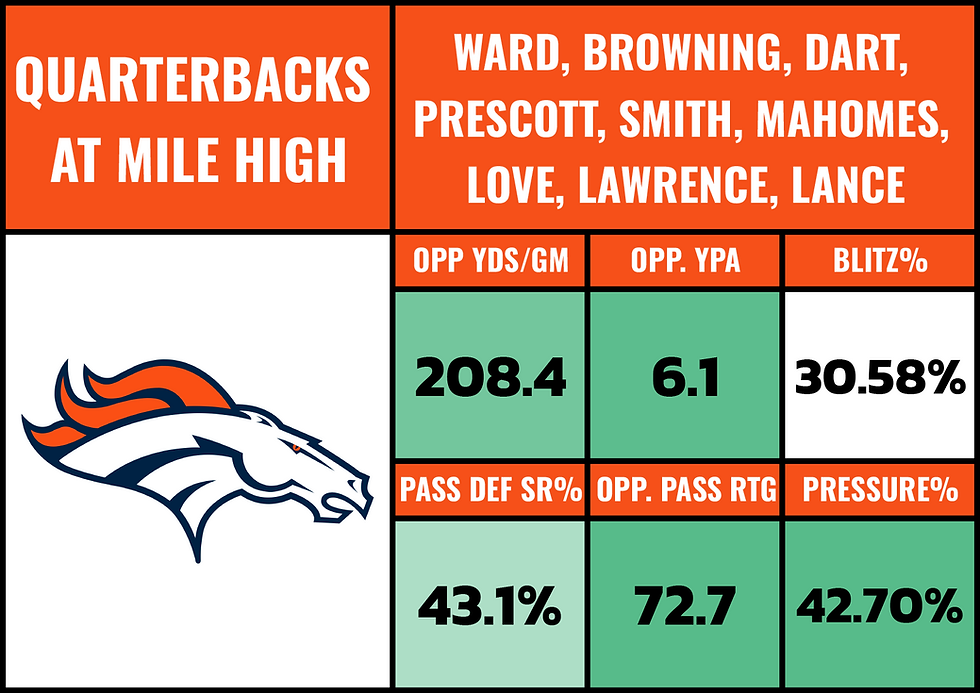 And QBs have not had a ton of success throwing the ball on Denver's defense in this building.